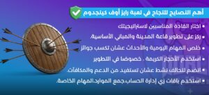 1- تركز من أول يوم في اللعبة على تطوير المدينة والمباني الأساسية، لأنها الأساس اللي بيفتح لك باقي التطويرات.