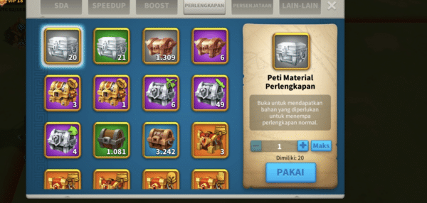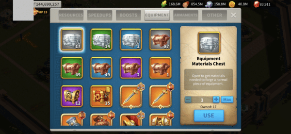 - — Key items: 2,204 Gold Head / 128 Passports / 4,500 Speedups (days)